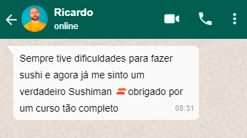 Curso passo a passo, totalmente didático, não importa se você não possui conhecimento sobre Sushi.